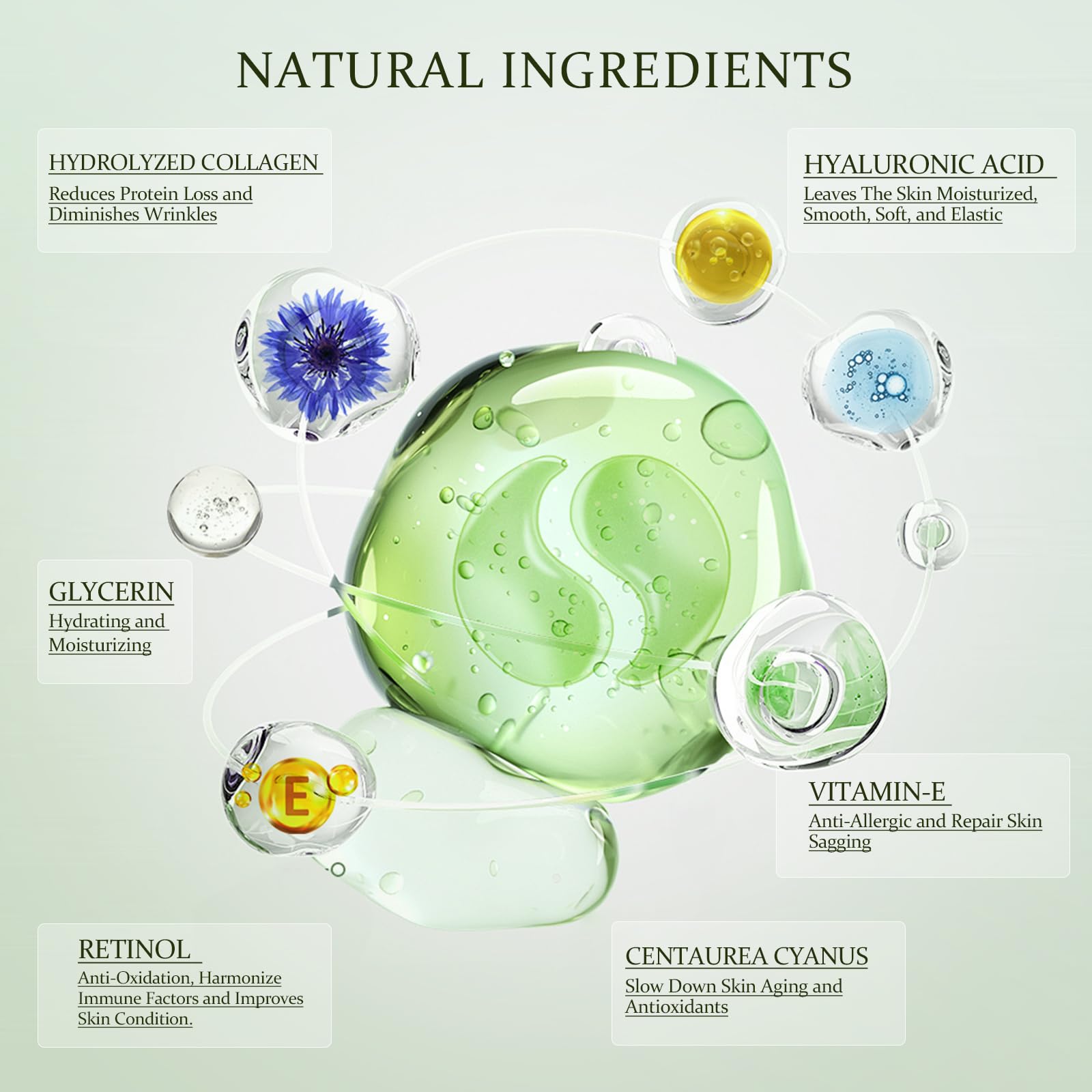 Details: Advancements in modern science have provided us with effective solutions to address the signs of aging and maintain youthful, vibrant skin. YOYORY eye mask for skincare is designed to diminish visible wrinkles, fine lines, crow's feet, and puffiness, offering remarkable results. Our under eye patches are specifically formulated to target problematic areas and revitalize the skin. The inclusion of hydrolyzed collagen in our masks helps restore a youthful glow, effectively reducing the appearance of aging. Additionally, our product harnesses the power of natural plant extracts. These botanical ingredients contribute to the efficacy of our eye pads, making them suitable for even the most sensitive skin types. By nourishing, moisturizing, and hydrating the skin's outermost layer, our masks help plump up the skin, reducing the appearance of fine lines and wrinkles. Embrace our ultra-hydrating treatment to bid farewell to wrinkles and enjoy a more youthful and radiant complexion.