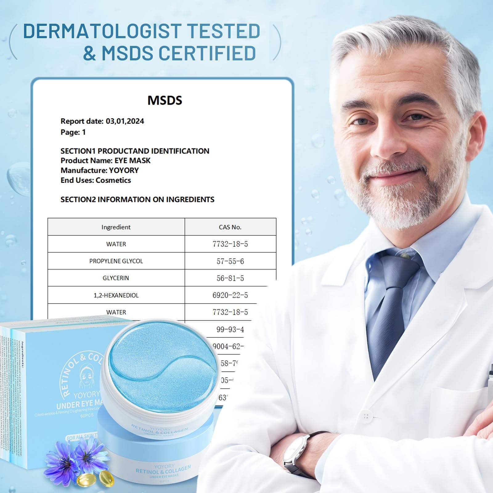 YOYORY Under Eye Patches Masks - for Eye bags with Collagen and Hyaluronic Acid, Dark Circles,and Fine Lines, Puffiness Smoothing Skin Care Treatment for Women and Men, Anti-Wrinkle(60 Pcs) Blue
