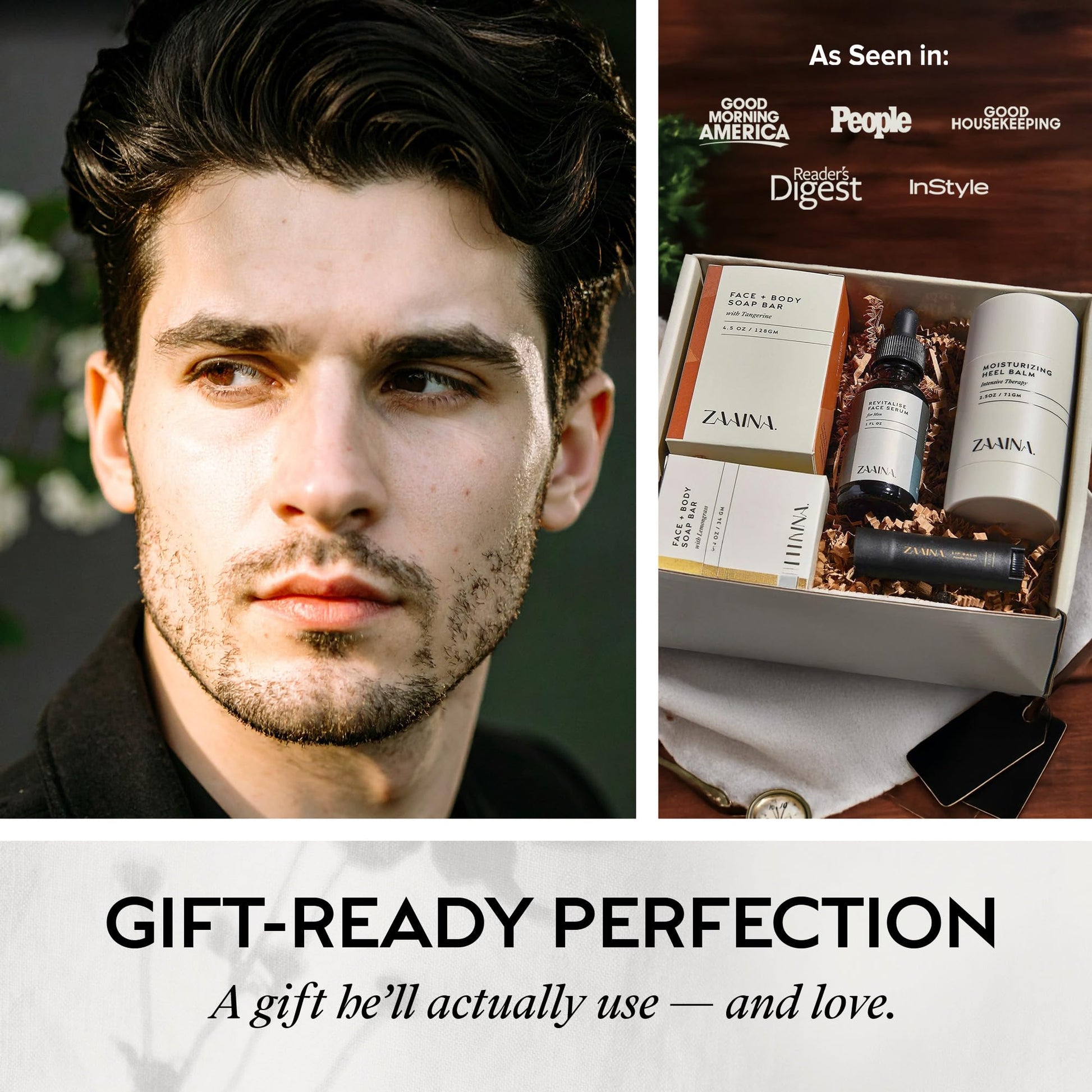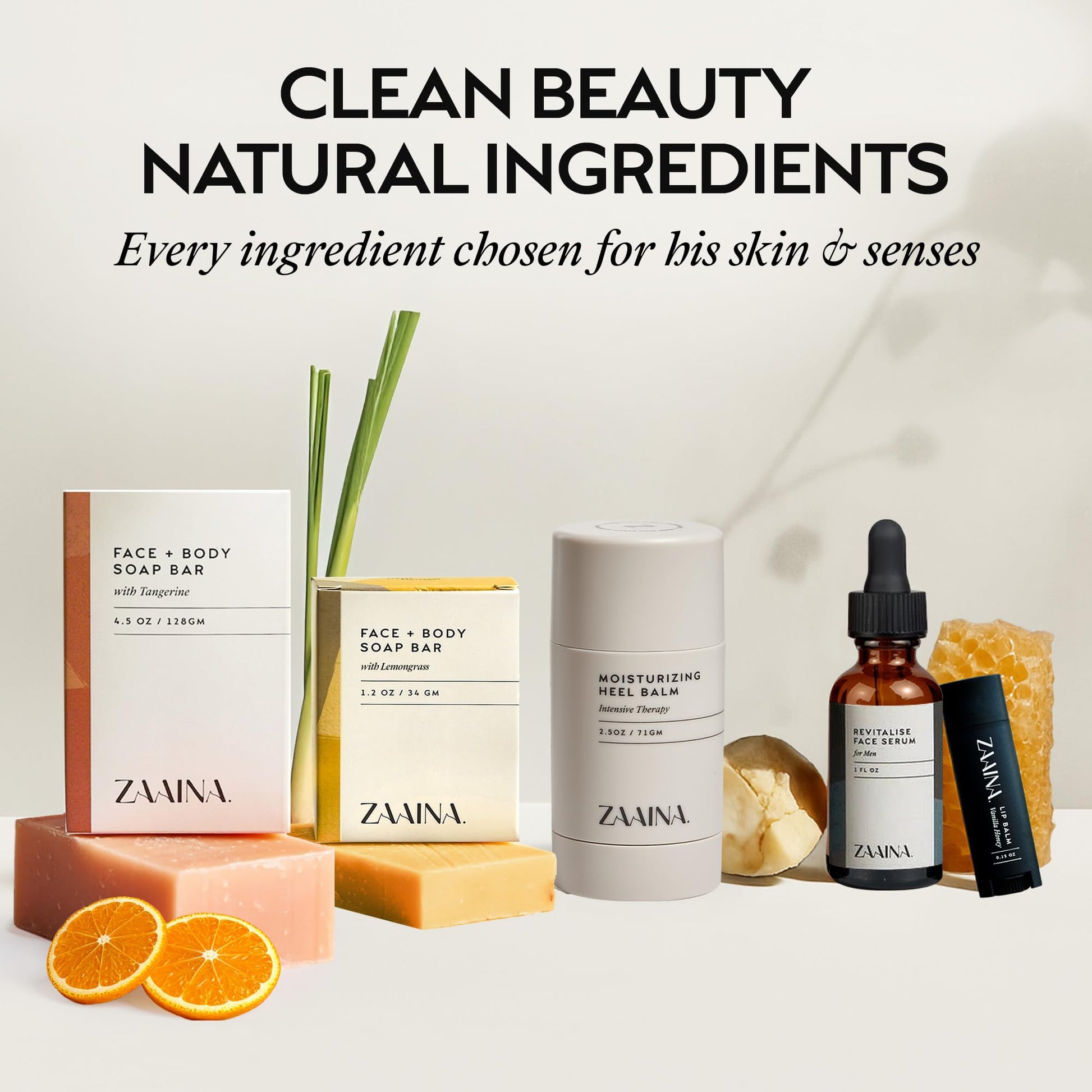 - NATURAL & CLEAN INGREDIENTS: The ZAAINA men’s self care gift set is crafted with essential oils, shea butter & botanicals.