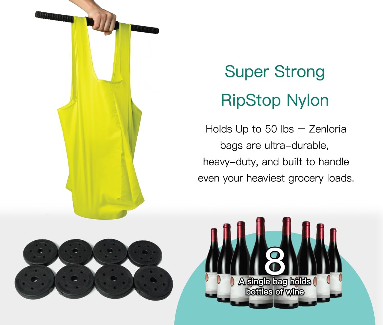 - Extra-Large & Strong – Each bag measures 21" x 15" and holds over 50 lbs—perfect for replacing 2–3 plastic bags in one go. Reinforced stitching and ripstop nylon mean no tearing, even with heavy groceries like cans, bottles, and produce.