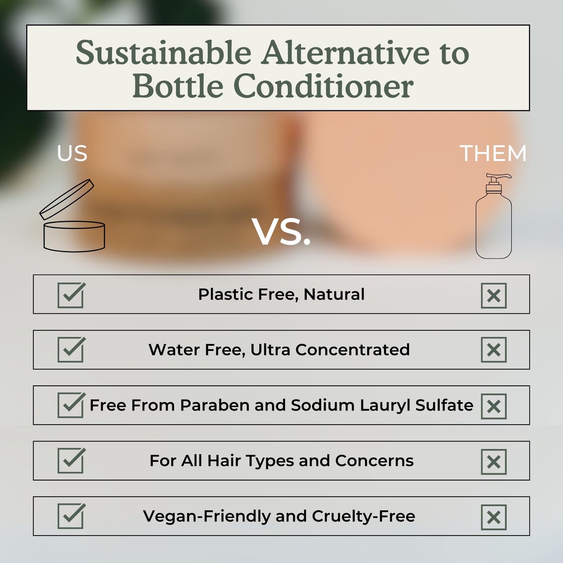 - PLASTIC-FREE: So long are the days of buying conditioner in wasteful plastic bottles! Our waterless, ultra-concentrated conditioner bars provide a silky lather that is moisturizing and nourishing for your hair and scalp. All while keeping plastic bottles out of our landfills!