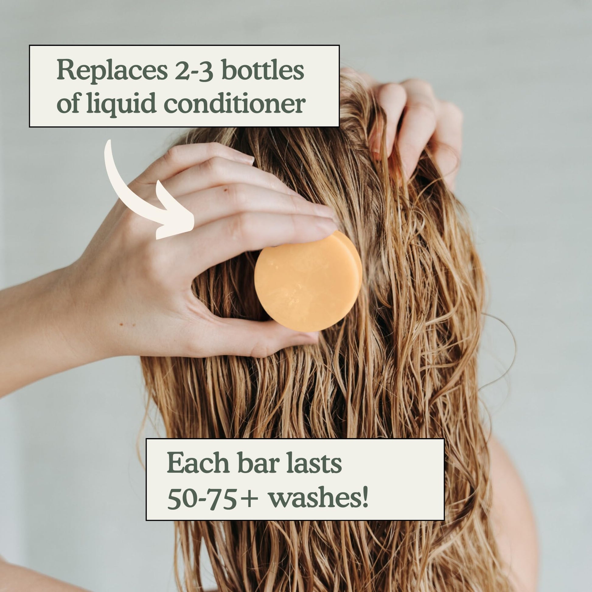 - ZERO WASTE & LONG-LASTING: Each bar replaces 2–3 bottles of liquid conditioner and lasts 50–75+ washes, depending on hair type and length. Packaged in sustainable kraft containers for an eco-conscious alternative.