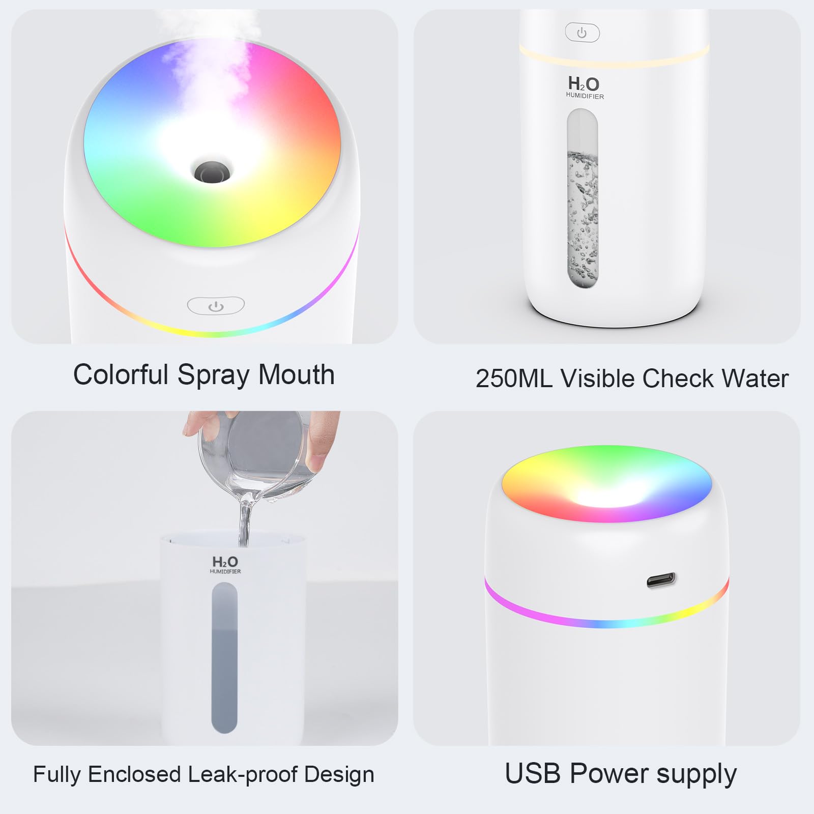 ZPP Portable Mini Humidifier with 7-color Lights for Car, Home, Office, Travel with Night Light, Auto Shut-Off