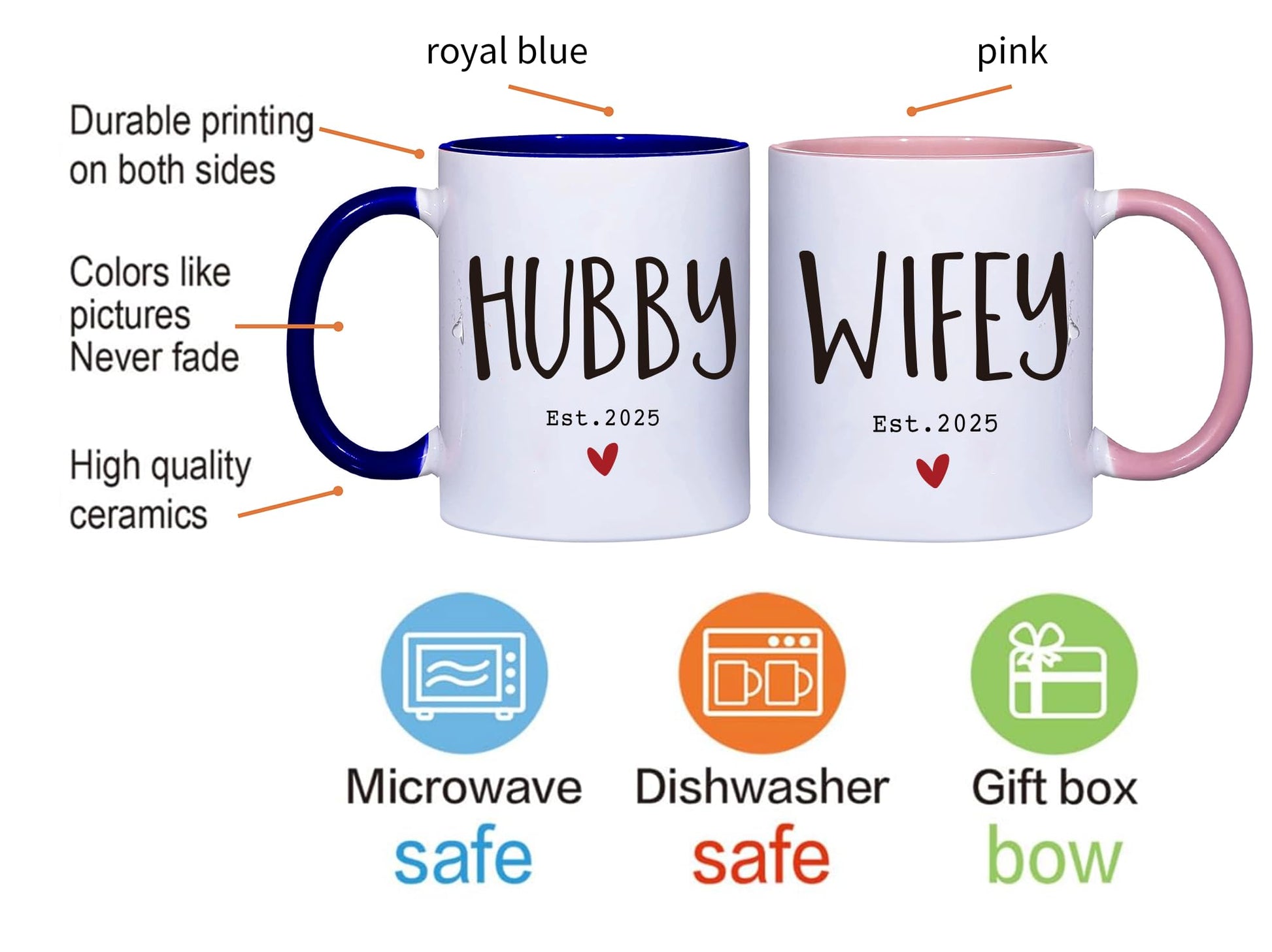 ZWV Est 2025 Hubby & Wifey Couples Coffee Mug Set - Mr & Mrs Bridal Shower Gift, Wedding Gift Set of 2