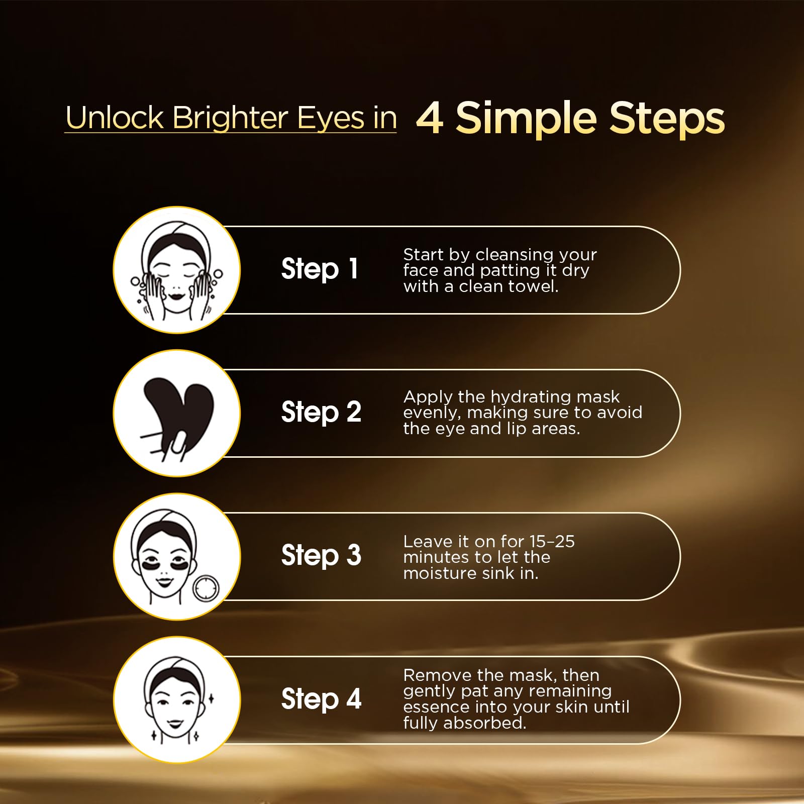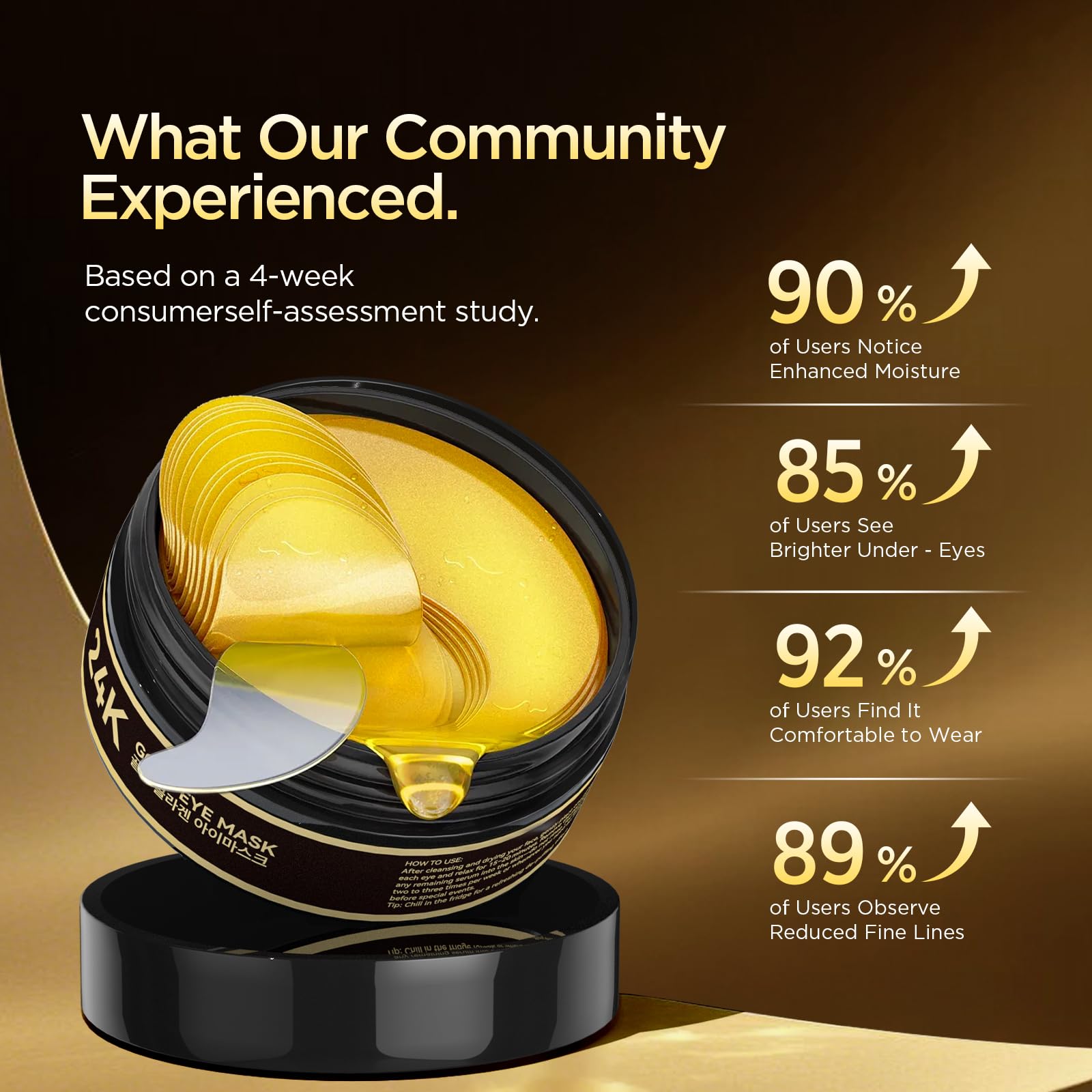 - Targets Multiple Eye Concerns:Blended with Gold, Caffeine, Acetyl Hexapeptide-8, and Hyaluronic Acid, these under eye patches visibly reduce dark circles, puffiness, fine lines, and under-eye sagging.